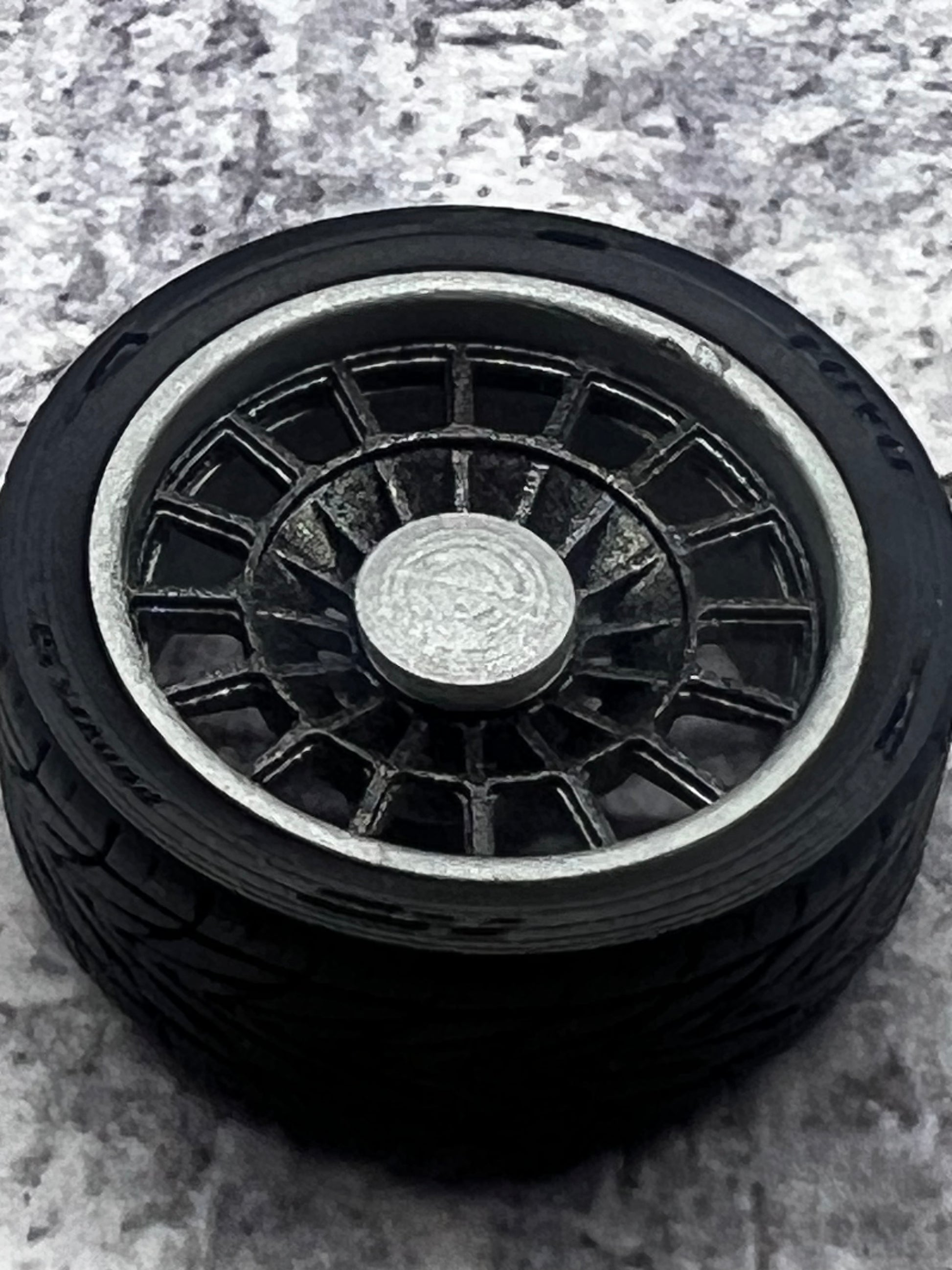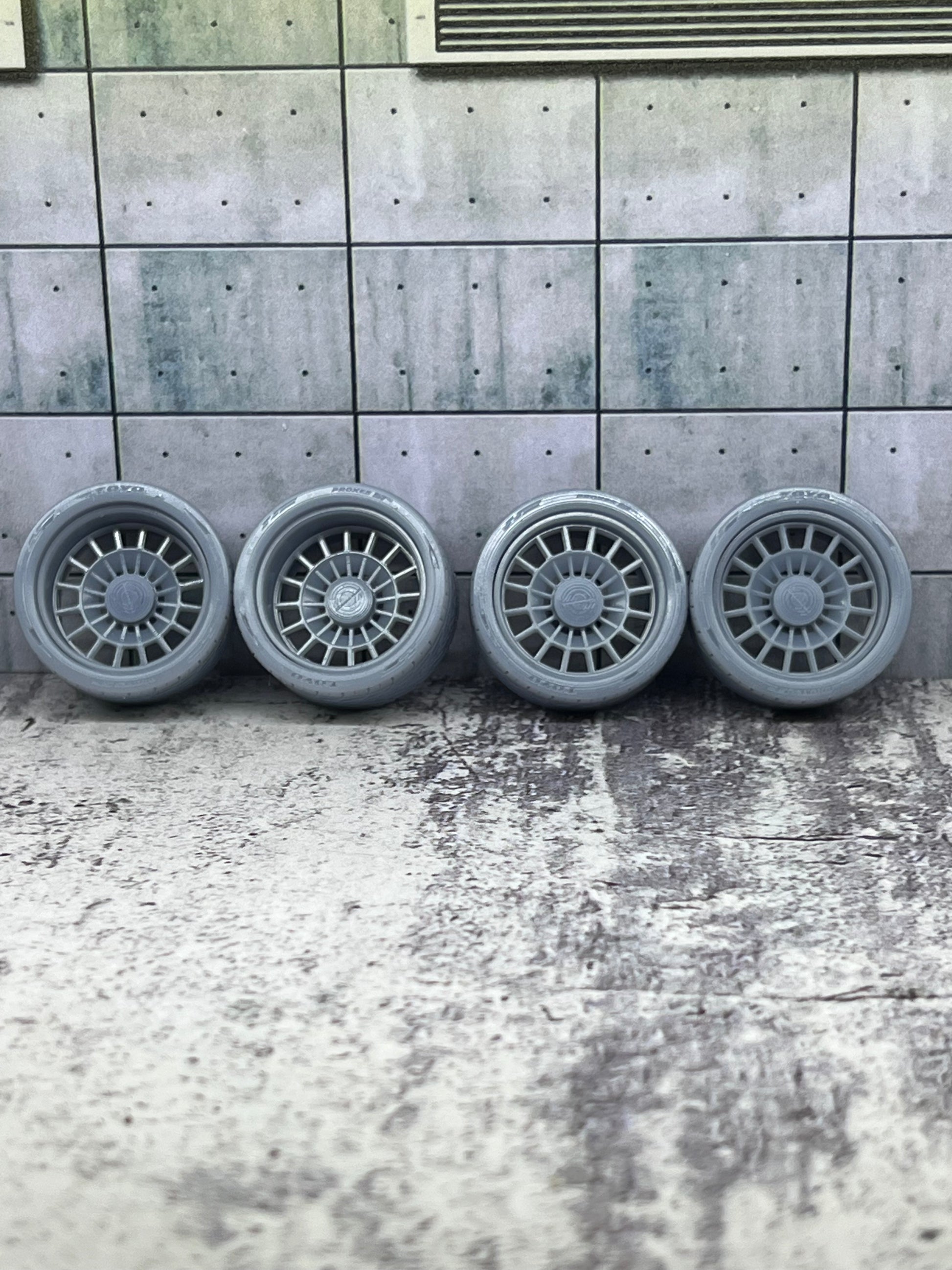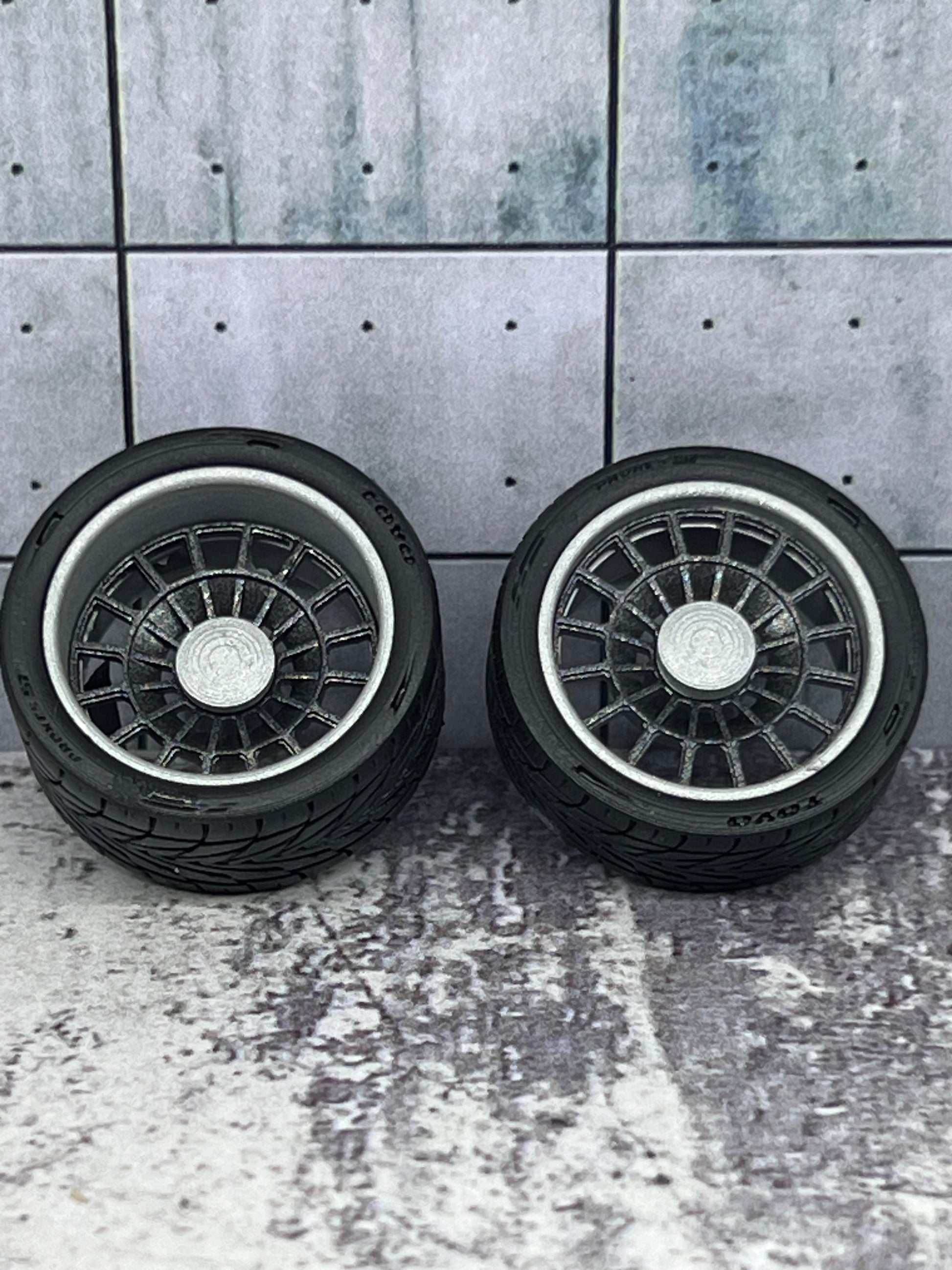Chevy Artillery style wheel set upgrade for scale modeling. Features staggered widths and a deeper offset on the rear for a deep dish look. Tires modeled after Toyo Proxes II. Designed as a kit to achieve the best possible detailing. Assembly, glue and paint required.