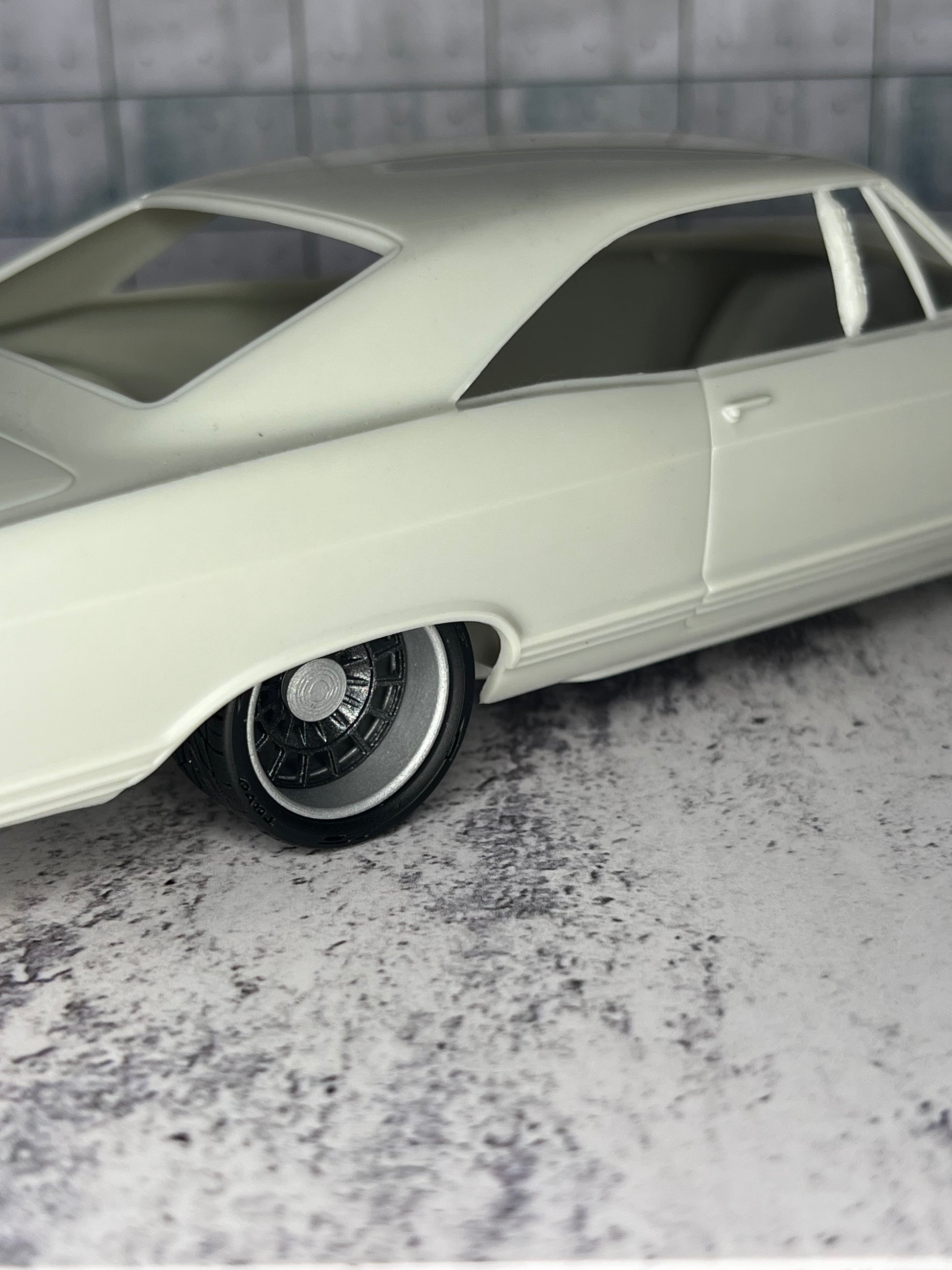 All parts come unpainted and unassembled, model not included. Tires are hard gray resin.